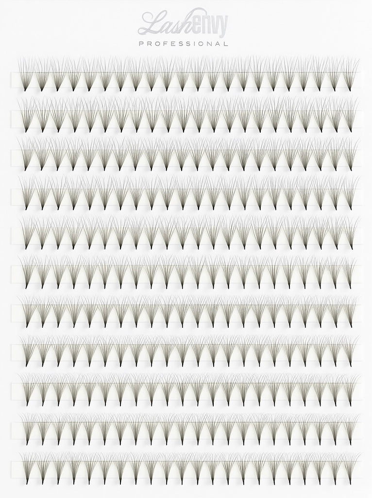 Create fluffy and pretty sets! Our Lash Envy Pro normal size fans will quickly become your go-to lashes to create beautiful Russian volume lash sets that are perfectly symmetrical, fluffy, black and able to create the perfect look your clients are after.
